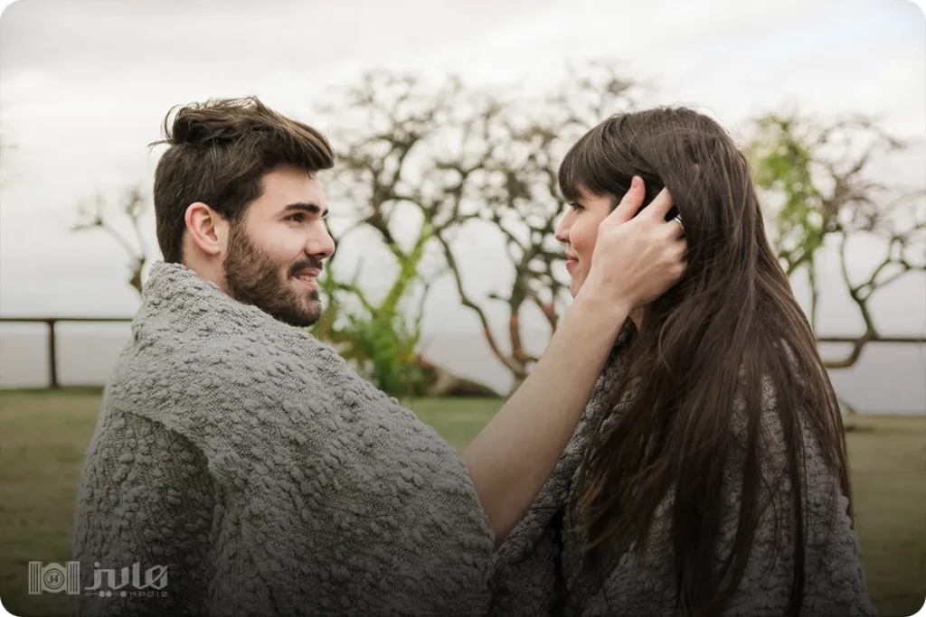 • استفاده از عناصر محیطی: منظره، اکسسوری‌ها یا جزئیات محیط می‌تواند به عکس‌ها عمق و داستان بدهد و حس صمیمیت و روایت رابطه را تقویت کند.